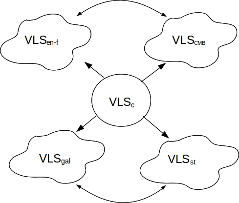 These broad categories can be further broken down into various model components, each functioning semi-autonomously while maintaining a certain degree of co-dependence. The fully comprehensive cosmological theory can be visualized as comprising 5 main cosmological models: 1) the VLS core model, , 2) the VLS energy density model, , 3) the VLS cosmic microwave background model, , 4) the VLS stellar model, , and 5) the VLS galactic model, .